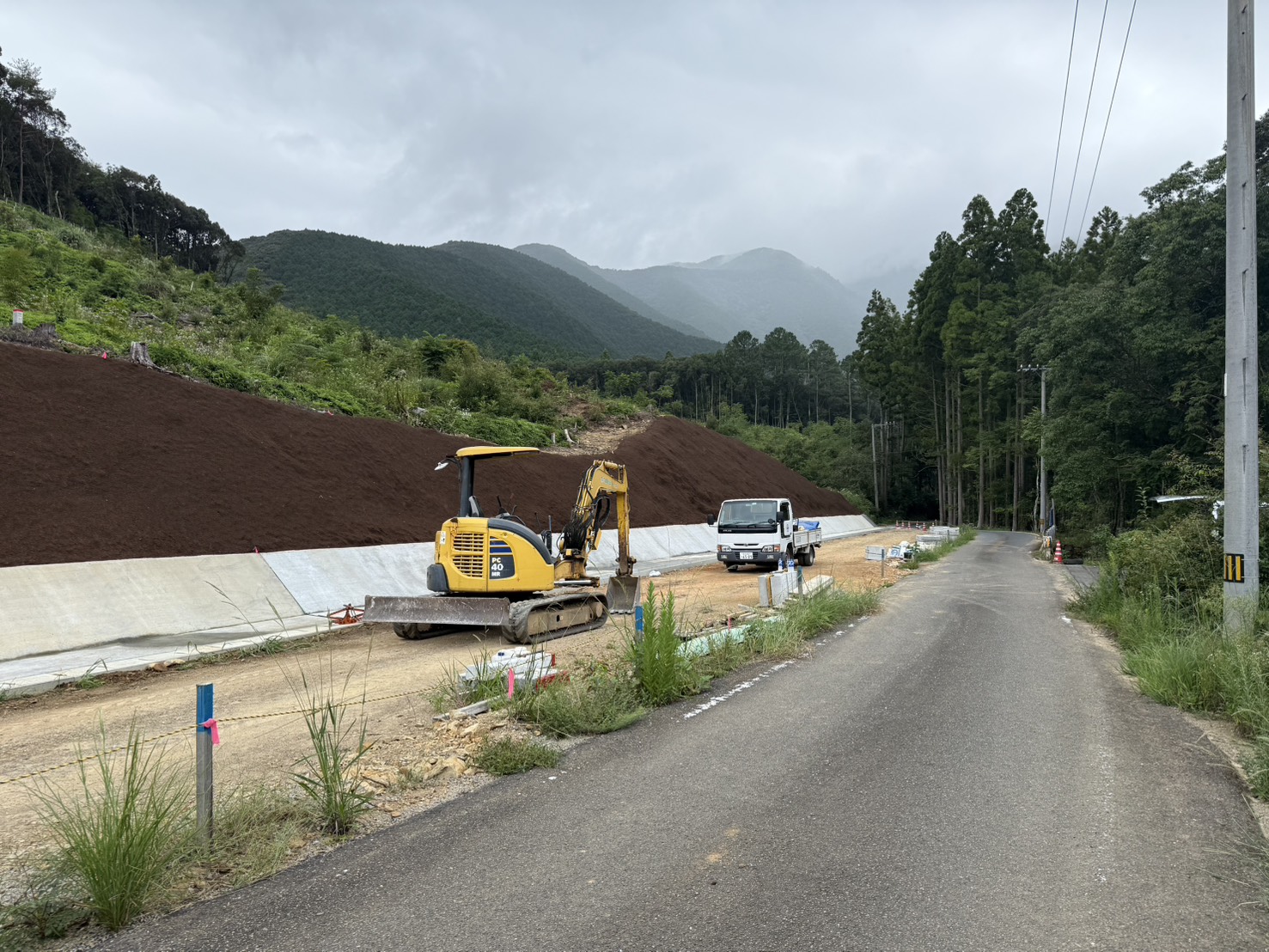 安田東洋線は昔ながらの1車線と道が非常に狭小であり現在もインフラ整備事業として、二車線化が進んでおり、こちらの写真も新設のトンネルが完成し、トンネル前の道路改良工事となります。